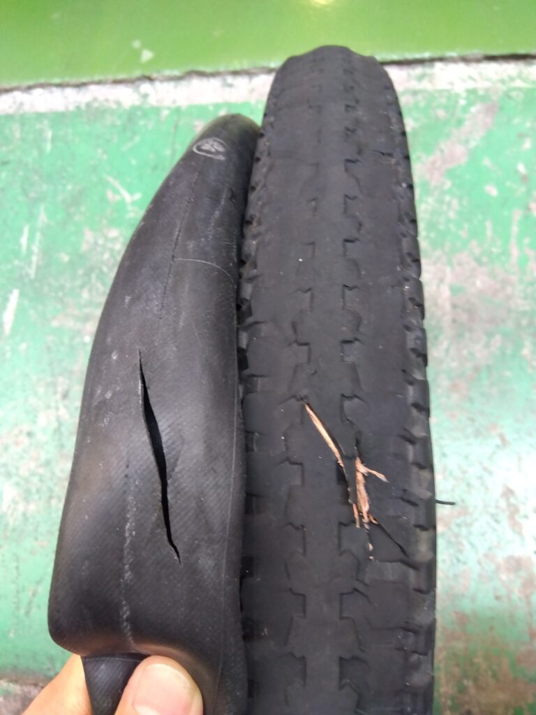 ・空気が少ないことでタイヤとチューブの間に隙間が出来、タイヤの中でチューブが中でずれてしまったり、劣化の原因となります。